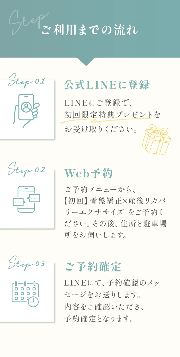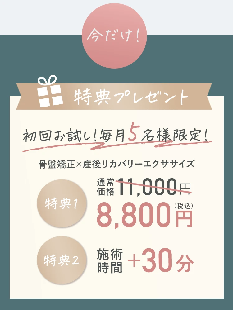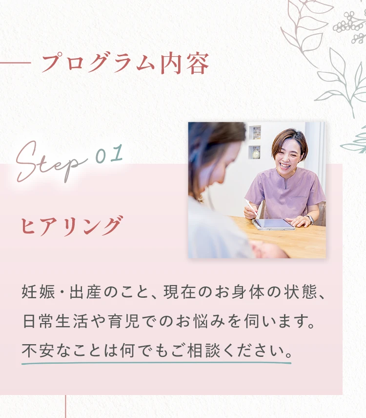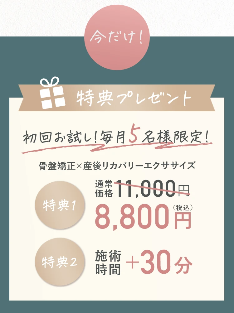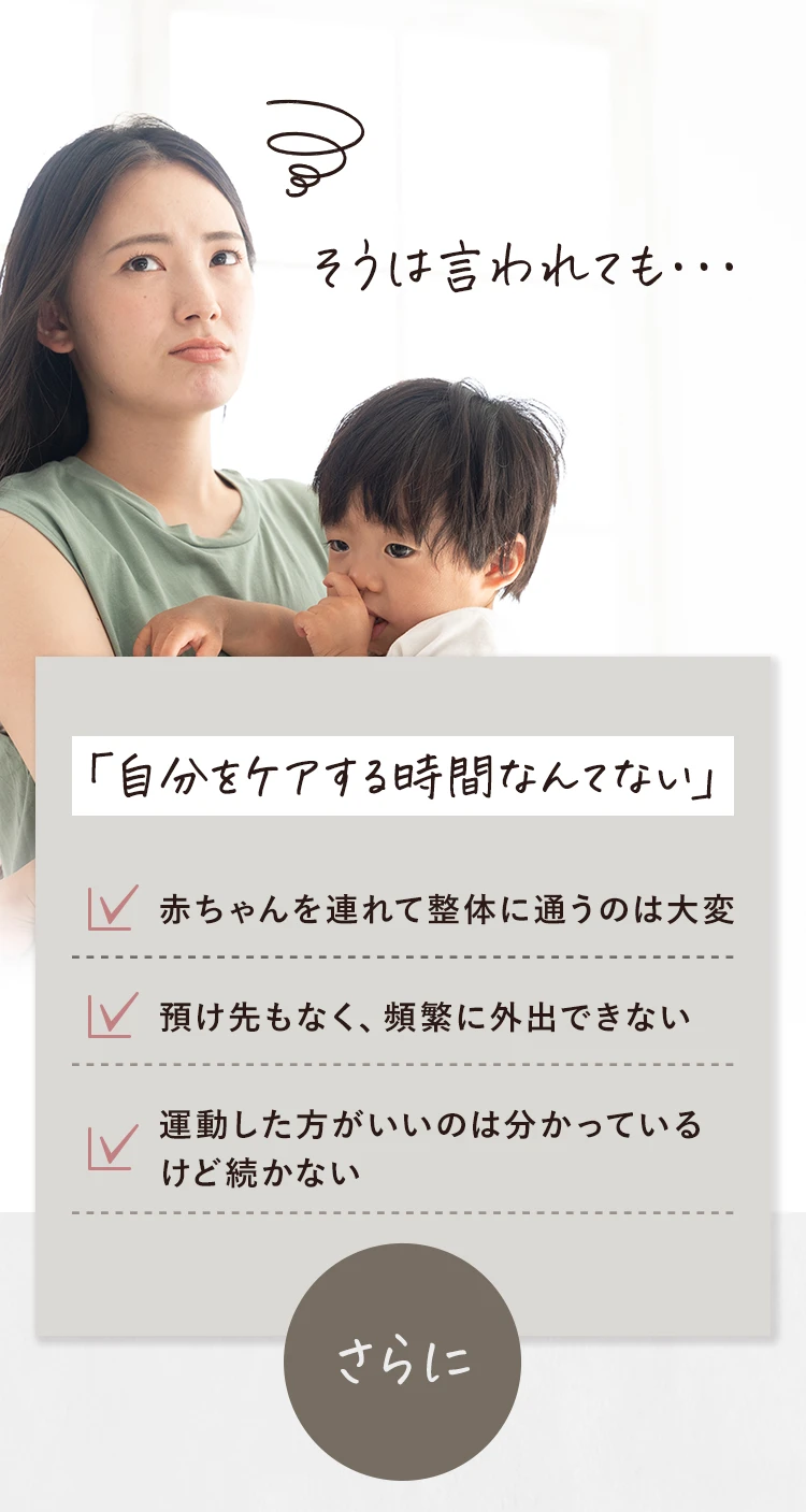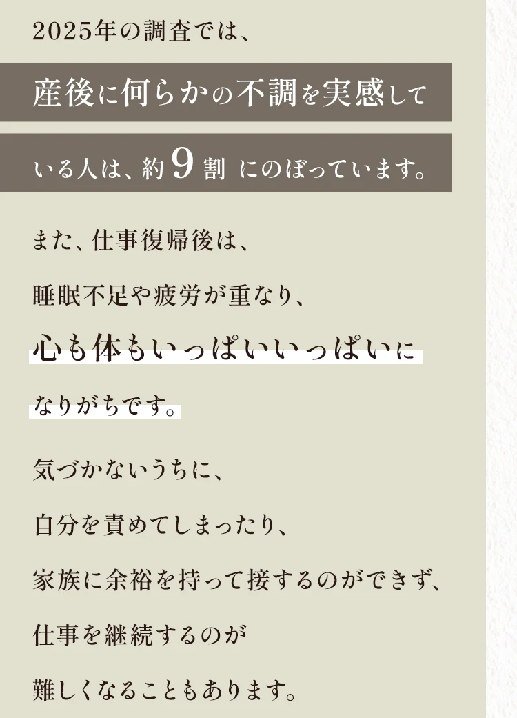 日常生活で傷みが強い、育児動作や生活に支障がある場合は1ヶ月検診前でもご相談ください。