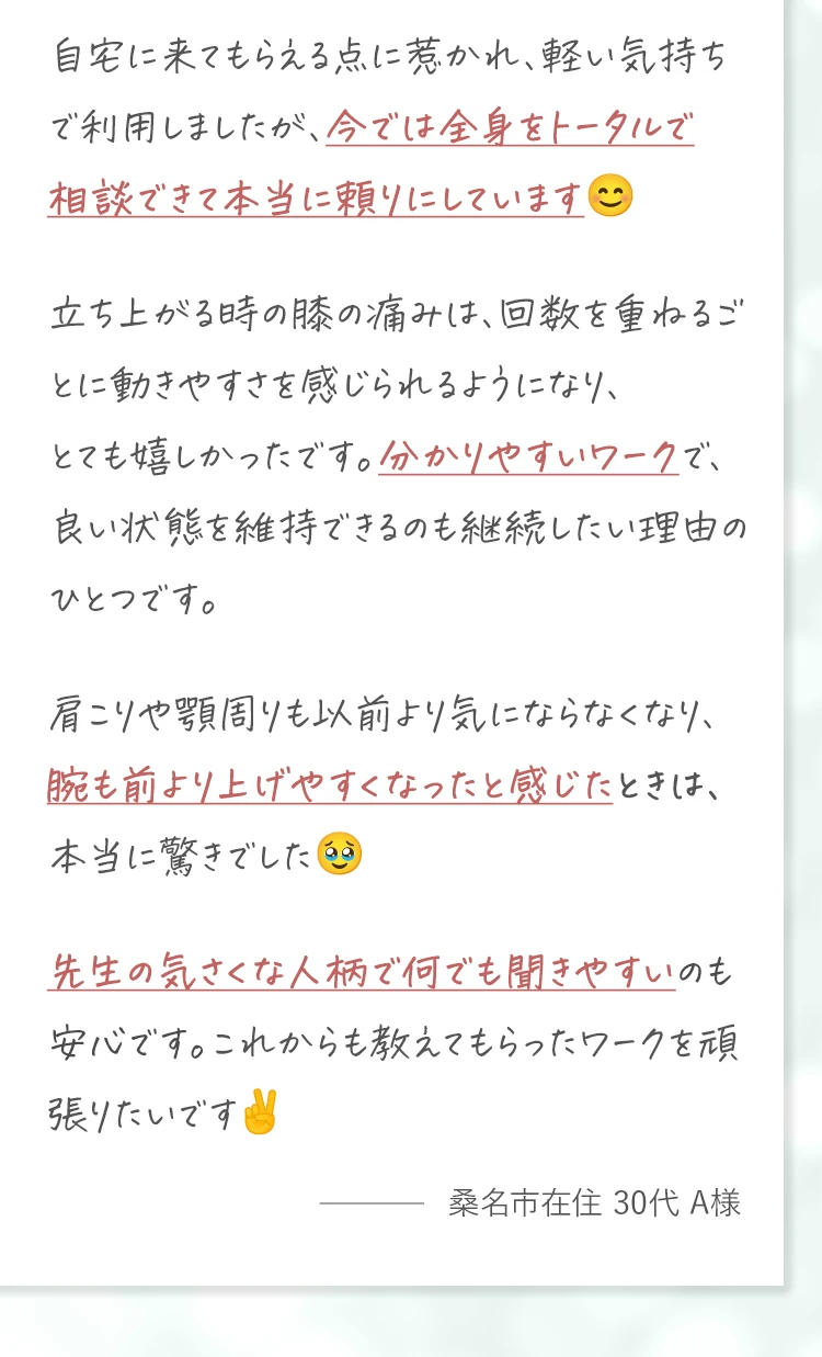 セラピスト自宅から片道10Kmを超えた距離に応じて出張料をいただきます。(1km50円)